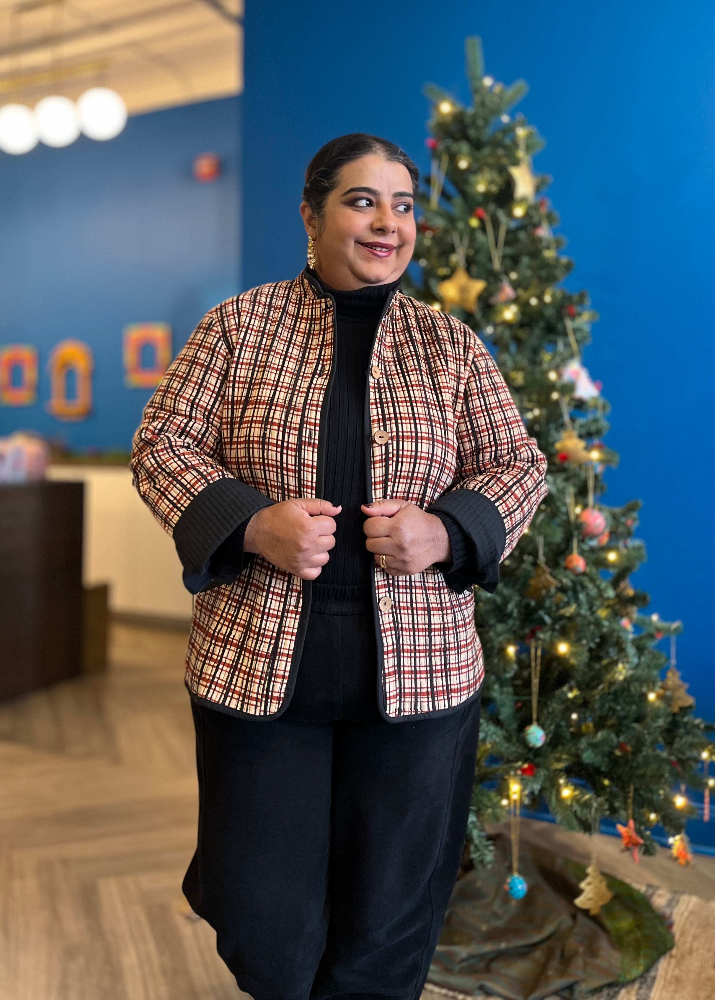 Quilted Jacket - Cream Red Black Check