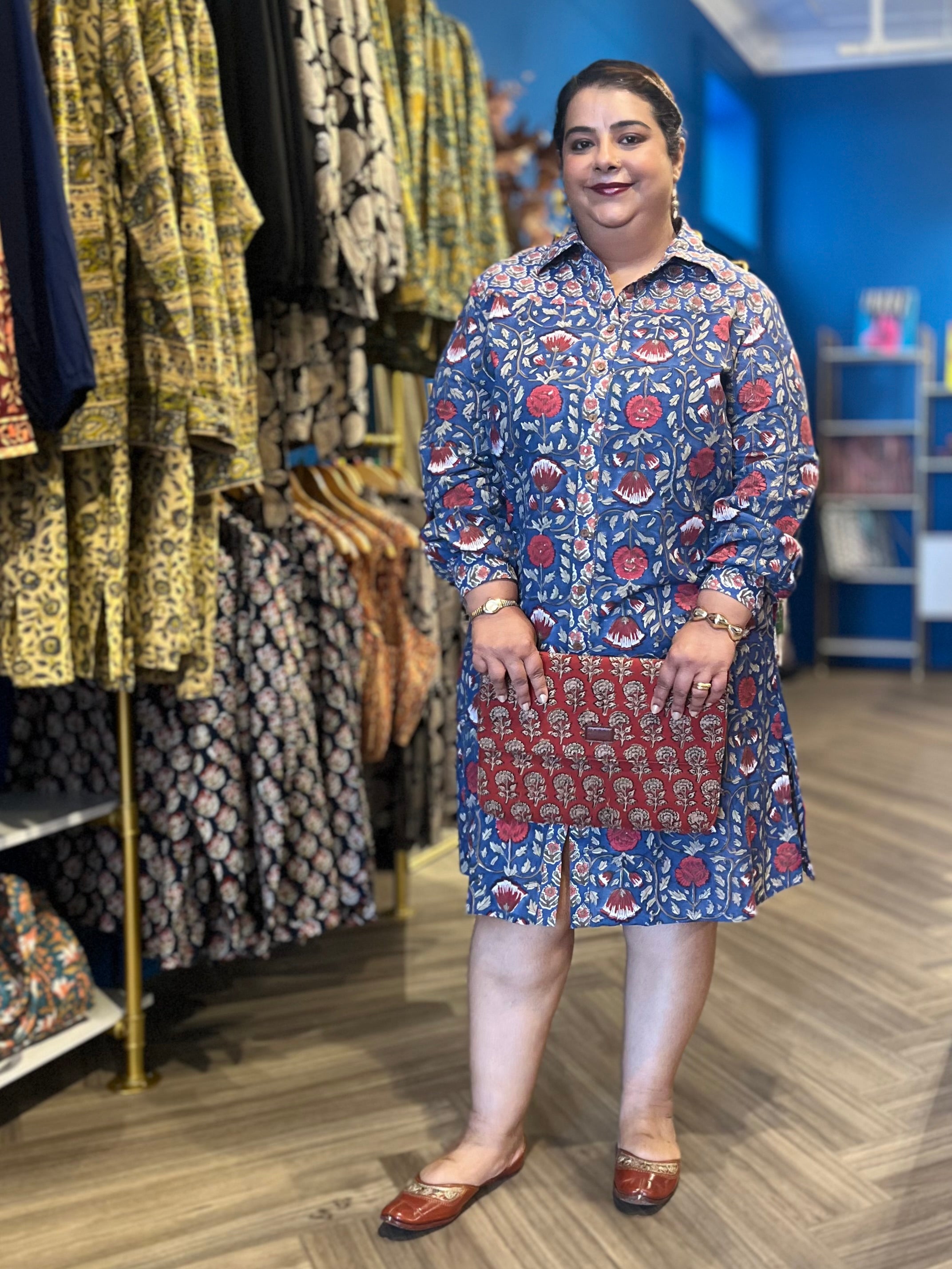 Two Print Shirt Dress ~ Red Rose