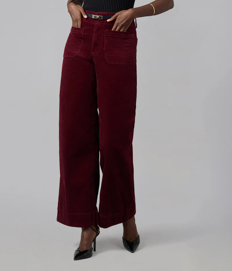 High Rise Wide Leg Cords in Syrah Red