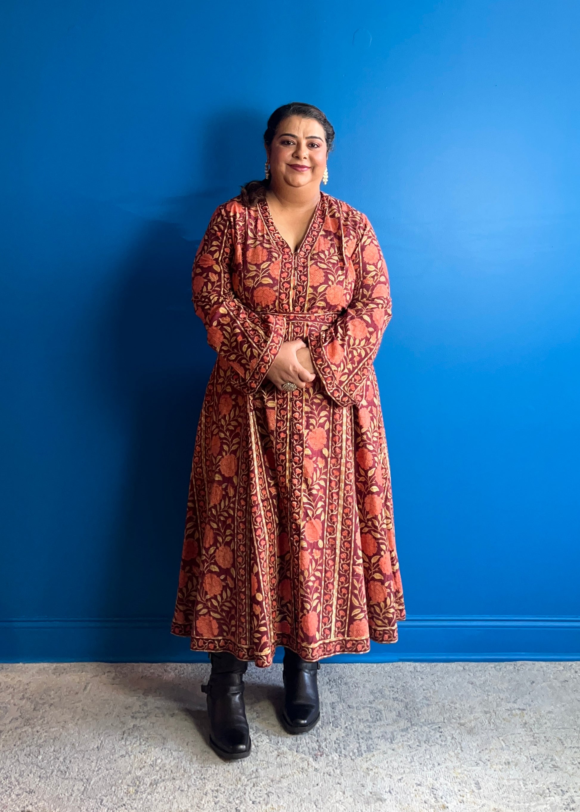 We recommend a gentle, cold water hand wash using natural detergents, and hang drying in the shade. Handcrafted garments are delicate, however, designed to last when treated mindfully with love and care.