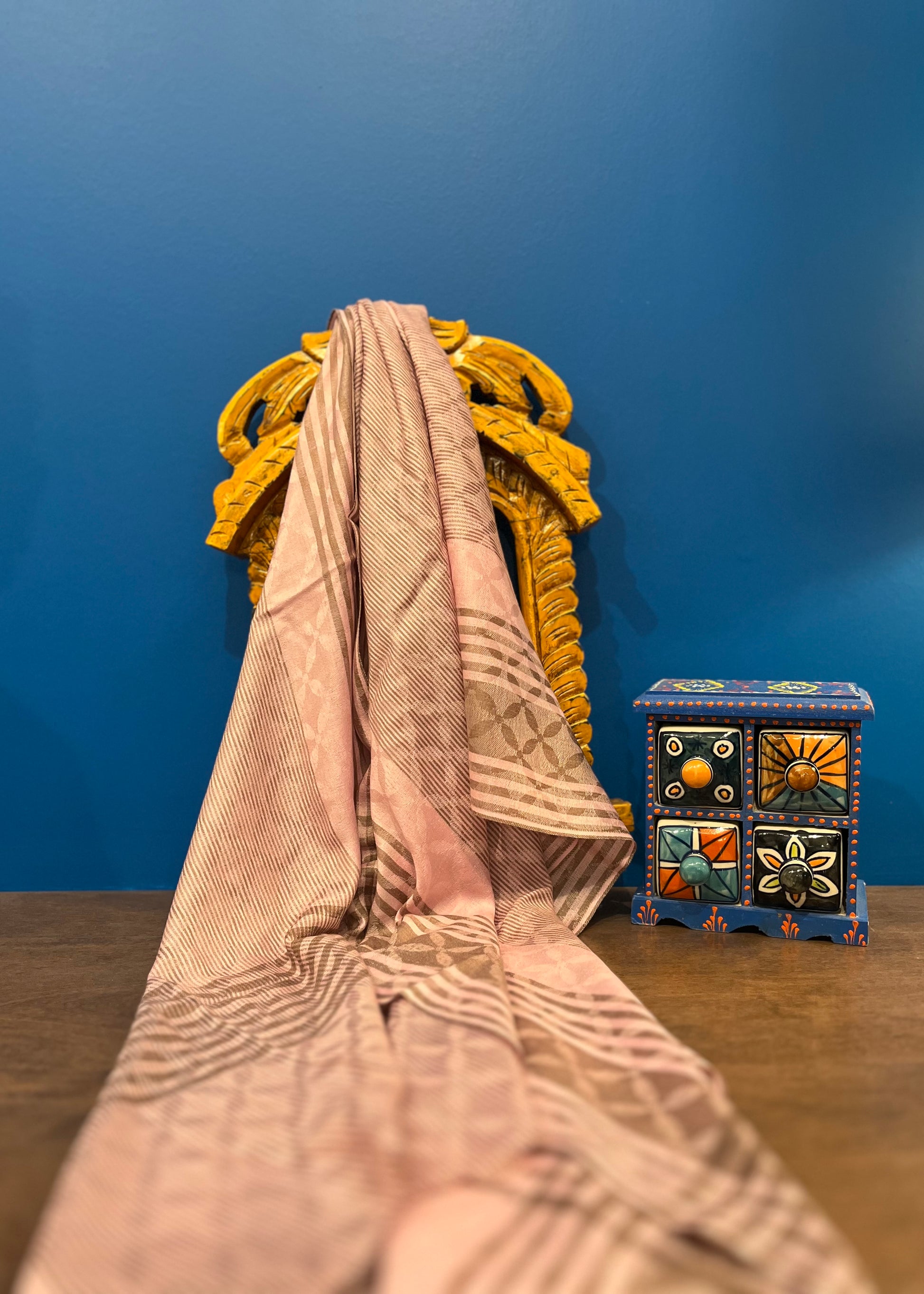 Cashmere Silk Wool Wide Scarf in Blush