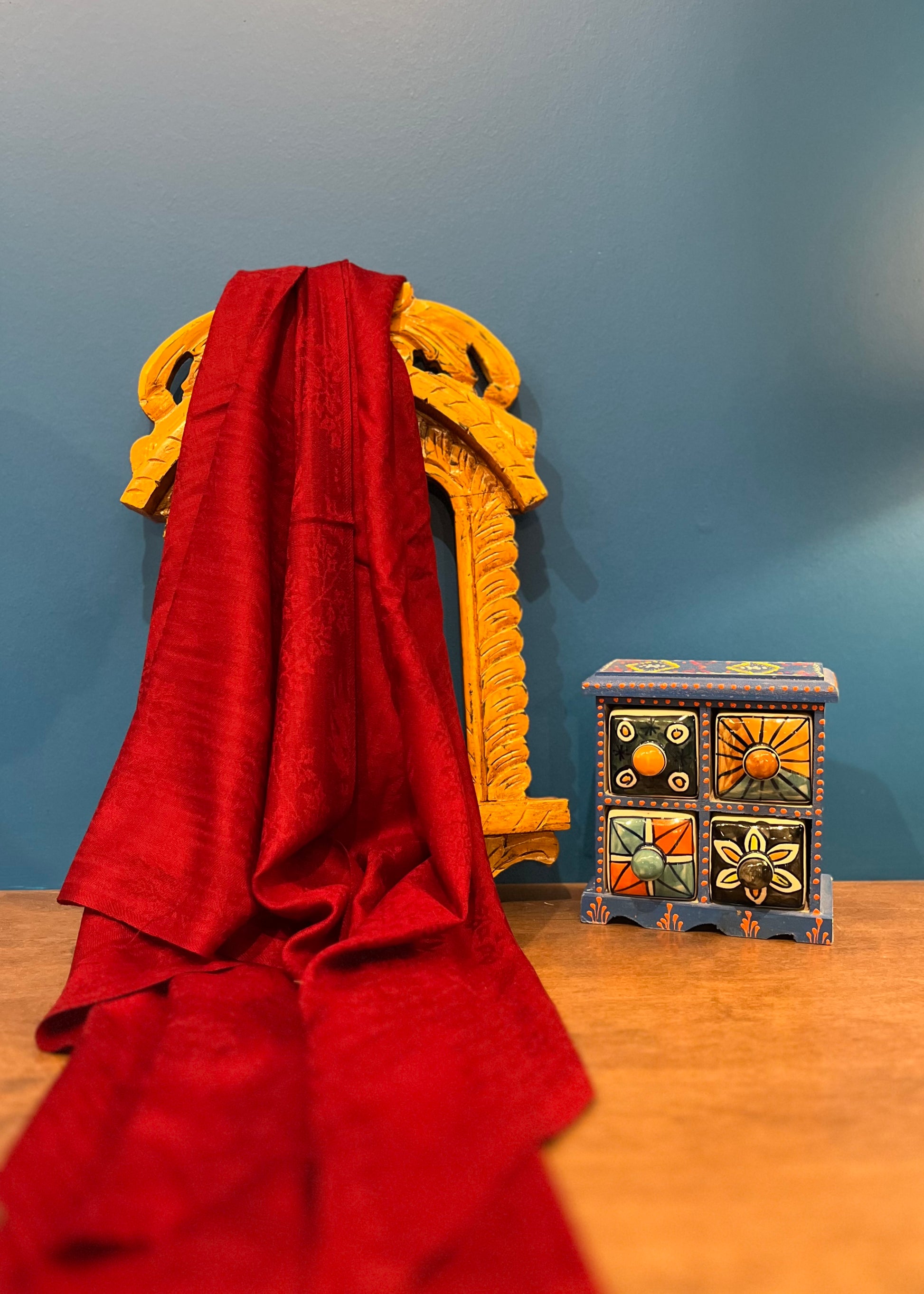 Cashmere Silk Wool Wide Scarf in Maroon