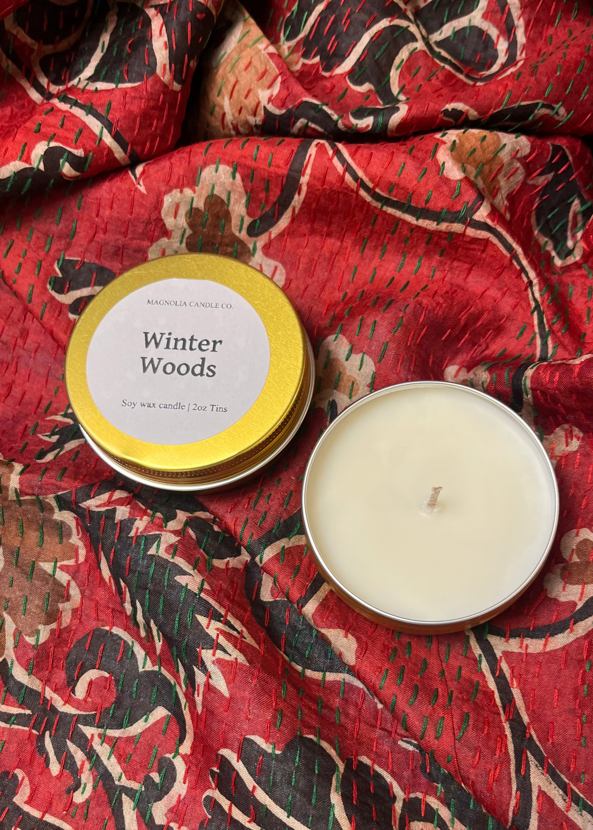 Add some festive flair to your holiday stocking with our 100% natural soy wax Winter Woods Candle Tin. This 2oz candle features a delightful winter wood fragrance that will fill the room with a cozy and comforting scent. Perfect for stocking stuffers!