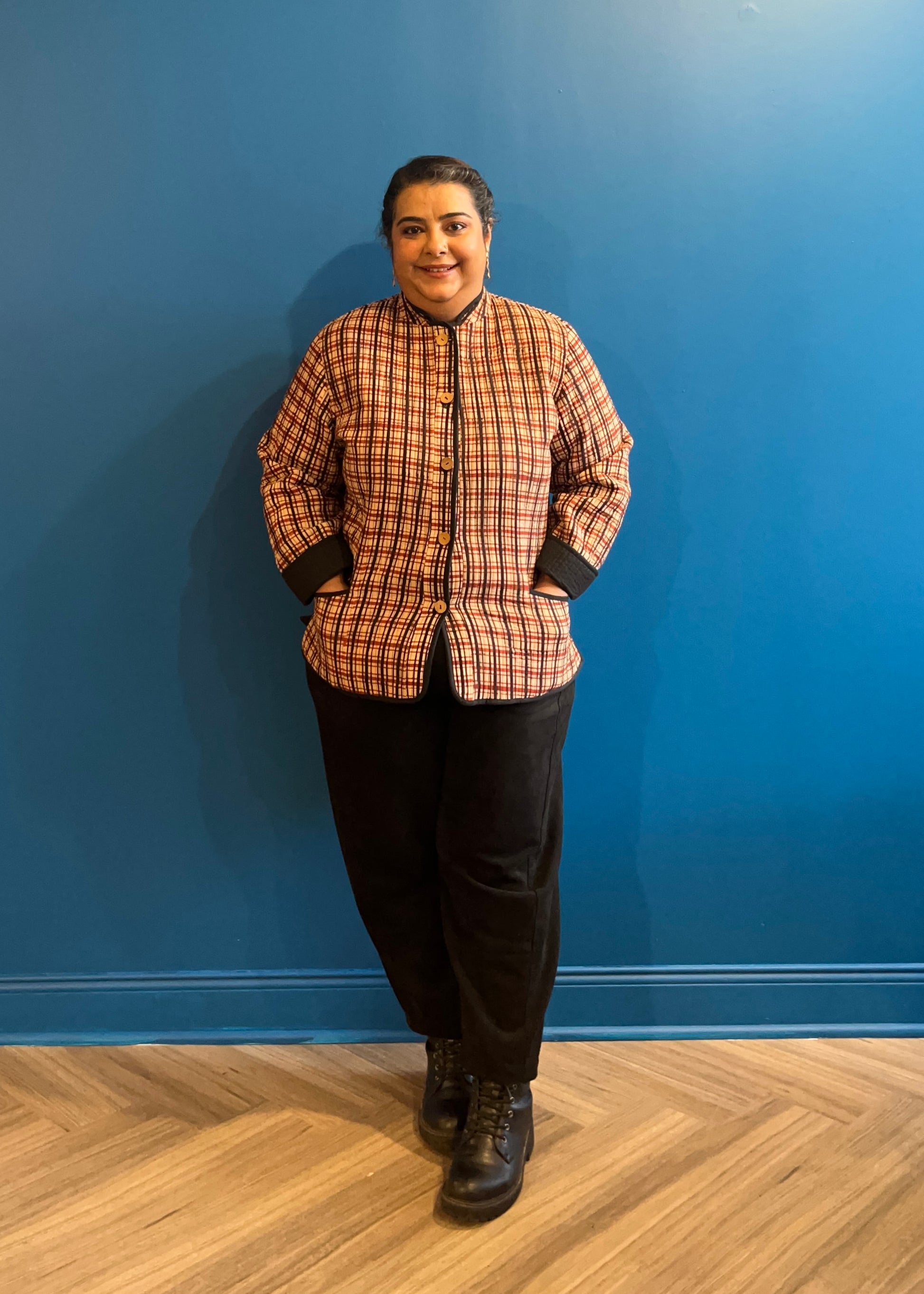 Fabric for this Jacket is handblocked printed by artisans. There may be slight differences/variations in products as shown in the photographs in terms of colors, prints, textures as it is a part of the process involved in the making of handcrafted products.