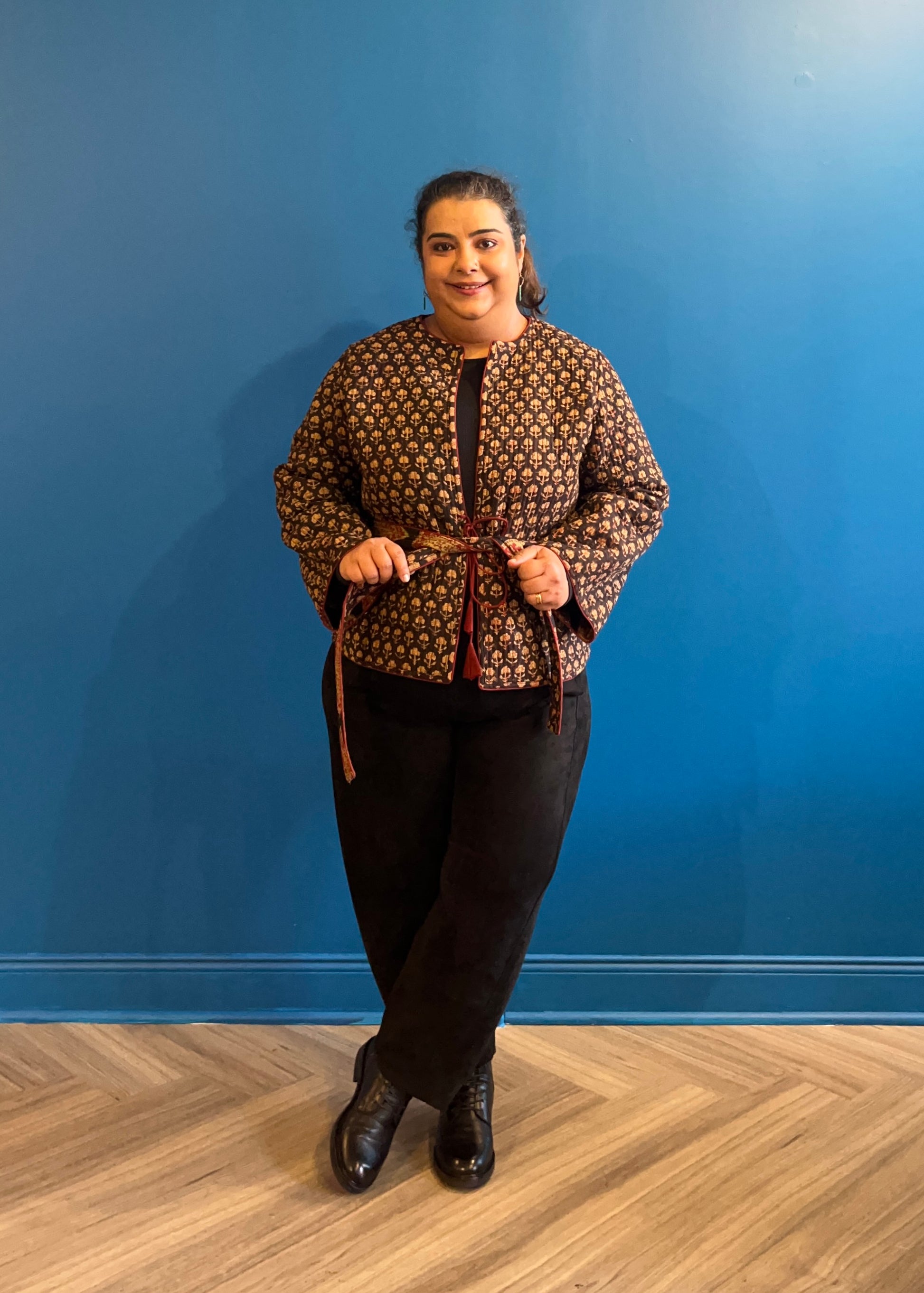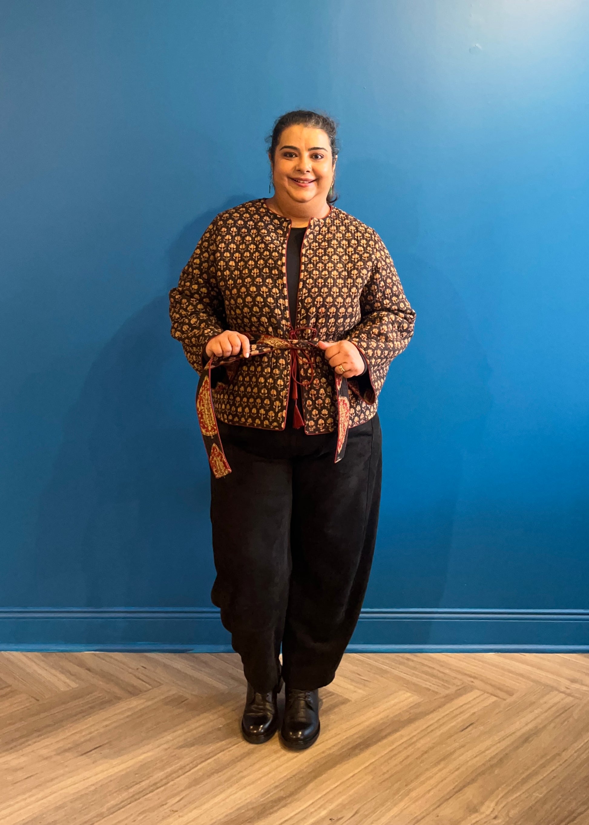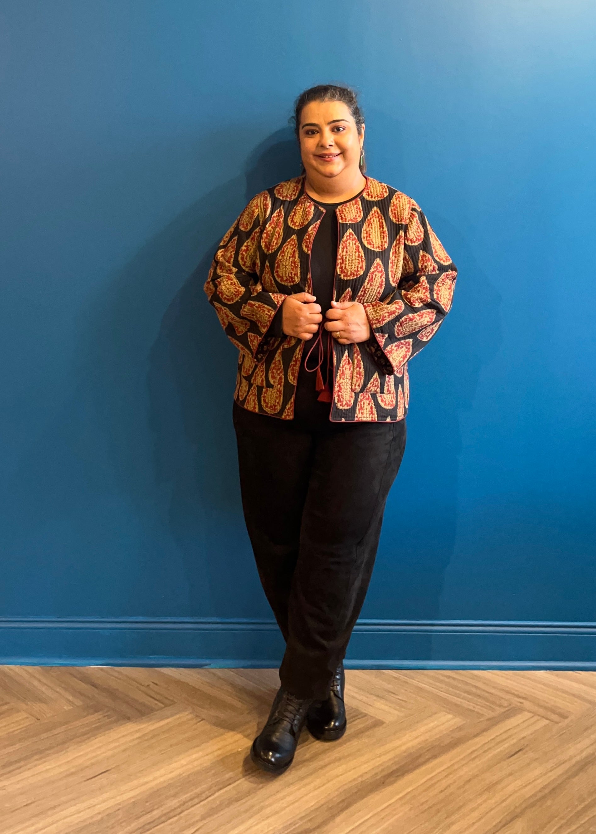 Fabric for this Jacket is handblocked printed by artisans. There may be slight differences/variations in products as shown in the photographs in terms of colors, prints, textures as it is a part of the process involved in the making of handcrafted products.