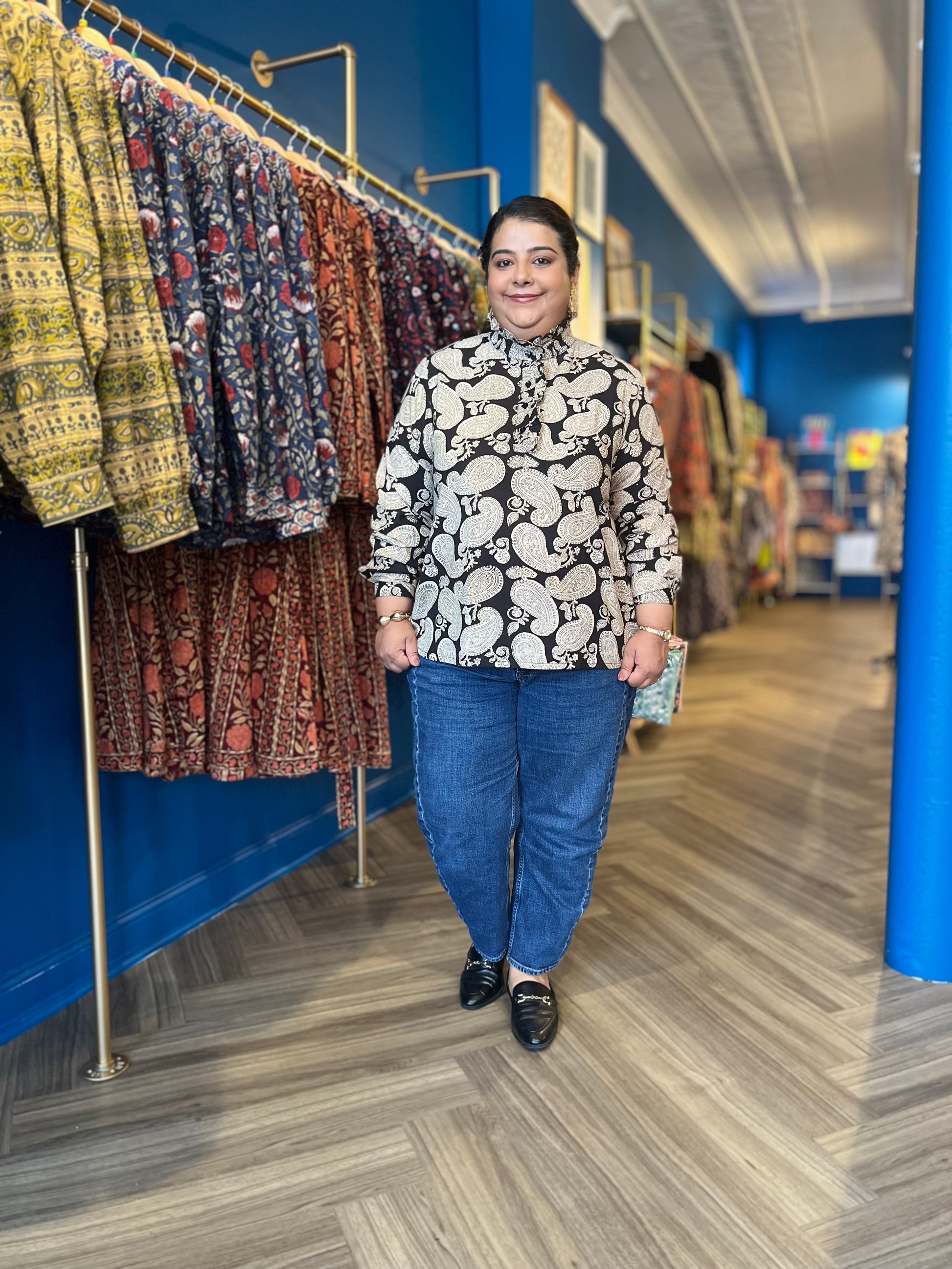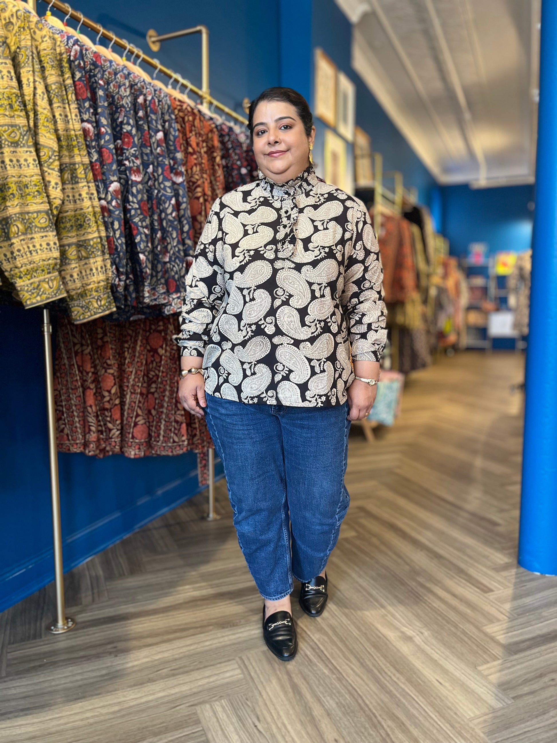 Fabric for this Shirt is handblocked printed by artisans. There may be slight differences/variations in products as shown in the photographs in terms of colors, prints, textures as it is a part of the process involved in the making of handcrafted products.