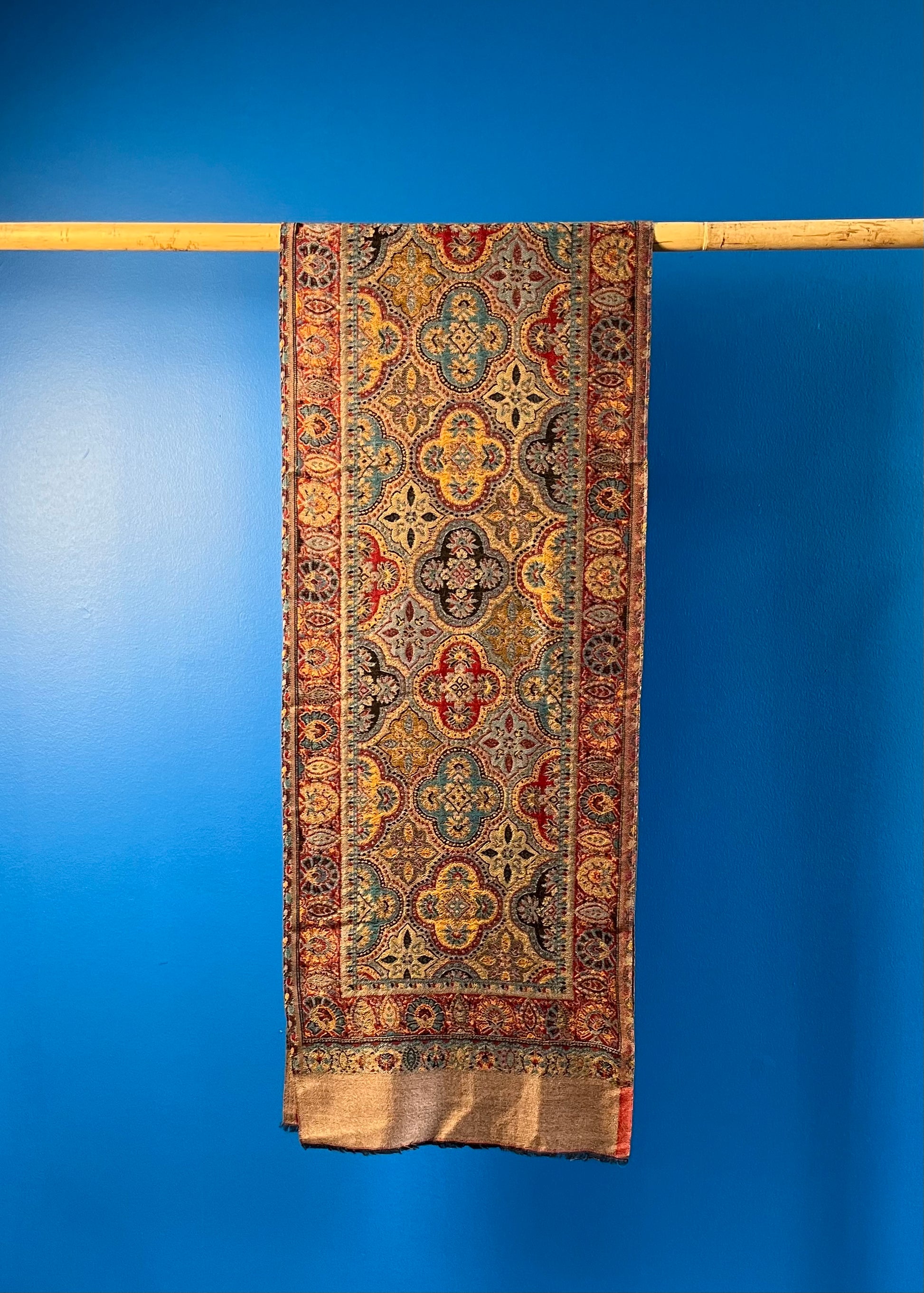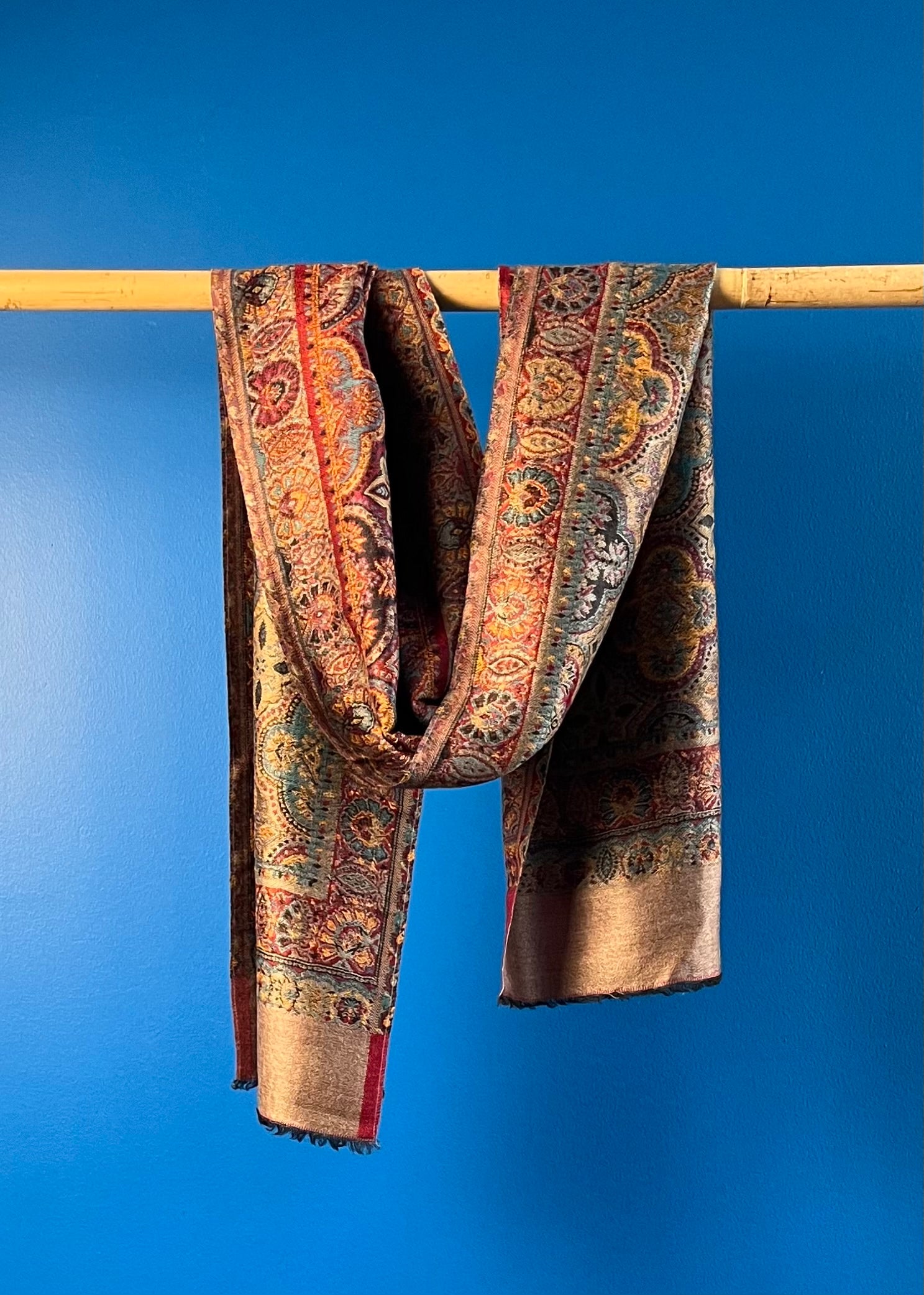 Wrap yourself in luxury with this stunning narrow neck scarf, where premium Wool and Tencel blend together for the ultimate cozy companion. Featuring an intricate Jamavar pattern in rich red and black tones, this piece is as soft as it is sophisticated. Perfect for adding a touch of elegance to any outfit while keeping you warm and wonderfully snug. A timeless accessory that feels as good as it looks!