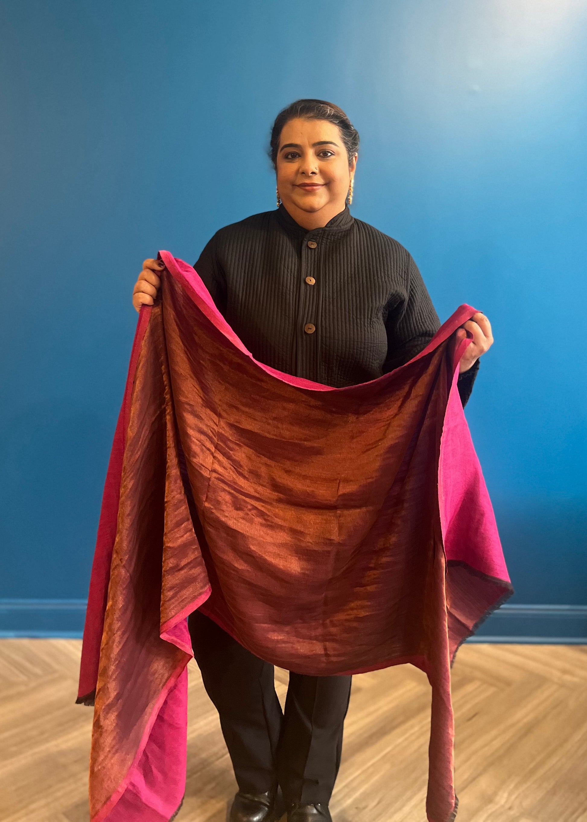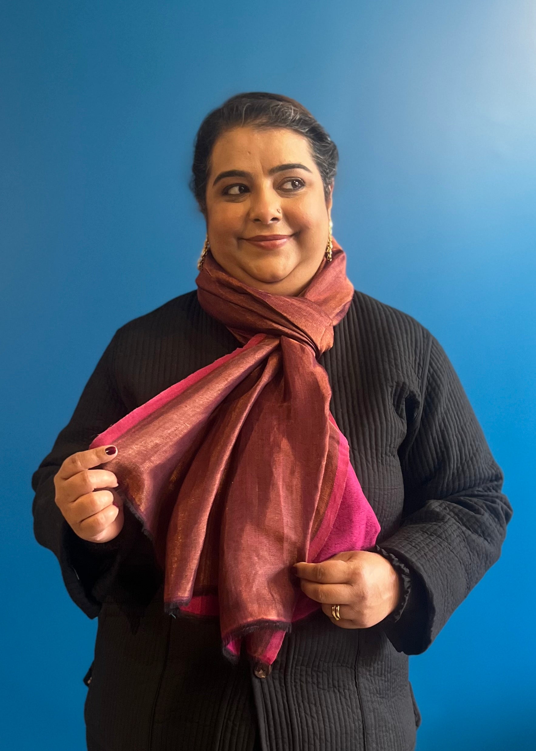 Wrap yourself in the best of both worlds with this stunning Wool Tencel Wide Scarf. One side features a soft, matte finish while the other showcases shimmering metallic threads that catch the light beautifully. Lightweight yet wonderfully cozy, it's the perfect layering piece for any season. Drape it over your shoulders, tie it around your neck, or style it however you like—this versatile scarf brings texture and personality to every outfit!